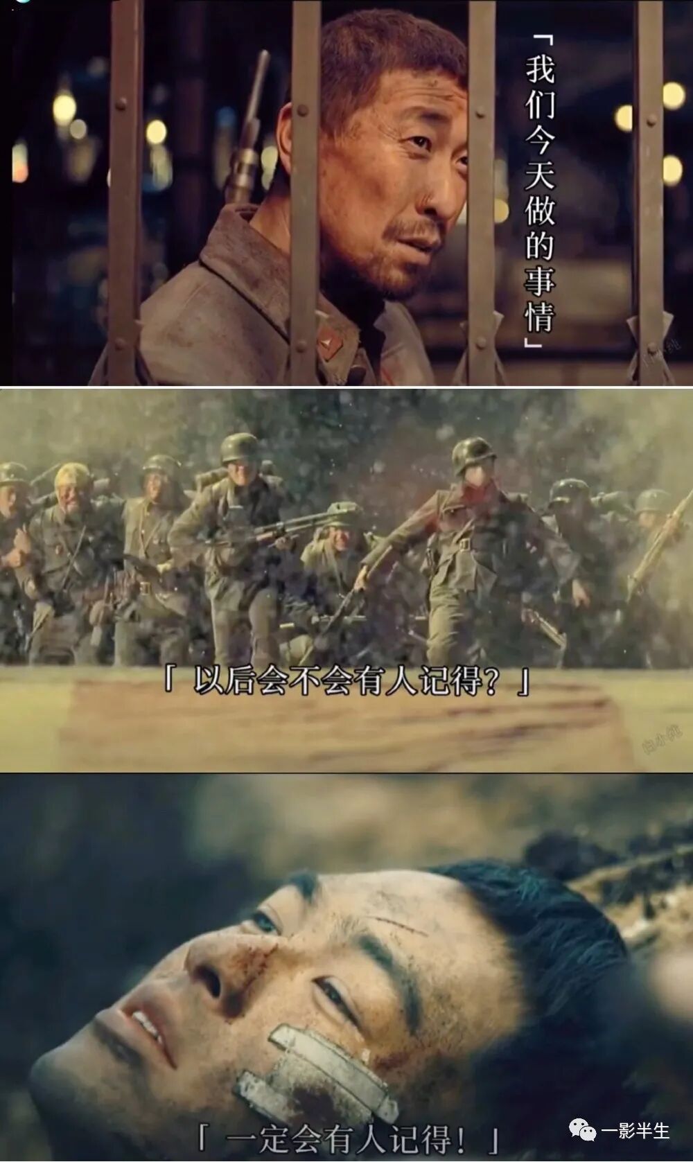 无需更多的言语和情绪渲染,光是直观视觉对比,无比的惊愕和震撼,观感足够震撼,最外放有力的证明是眼泪。那些被成为英雄的战士们,他们首先,是儿子,丈夫,父亲。当他们迎着敌人猛烈的炮火向前冲的时候,放下了牵挂的母亲,素未谋面的孩。如此强烈的共情,必定让观众泪流满面。